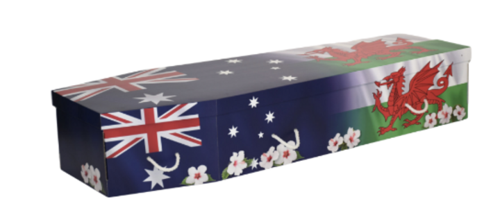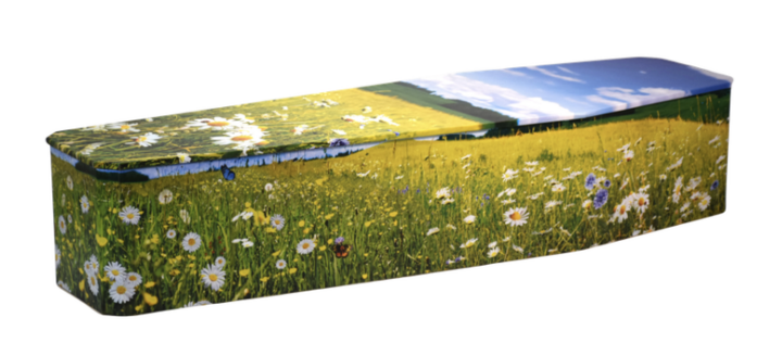 Custom coffins come in a wide variety of colours and patterns and can be customised with your own images.